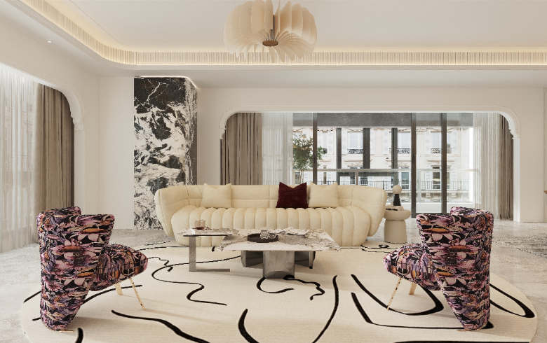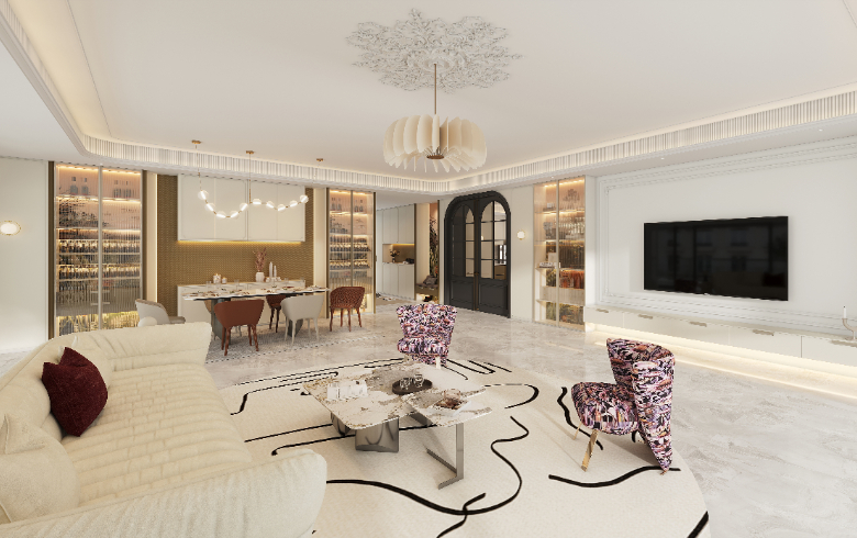 輕法式中古風,不示喧囂,不顯山露水,不喜高調張揚,一切顯眼包的顏色在這里幾乎看不到蹤影,有且也僅作為輔助色進行點綴,在低調內斂中透出骨子里的精致考究,散發自身貴氣與品味。