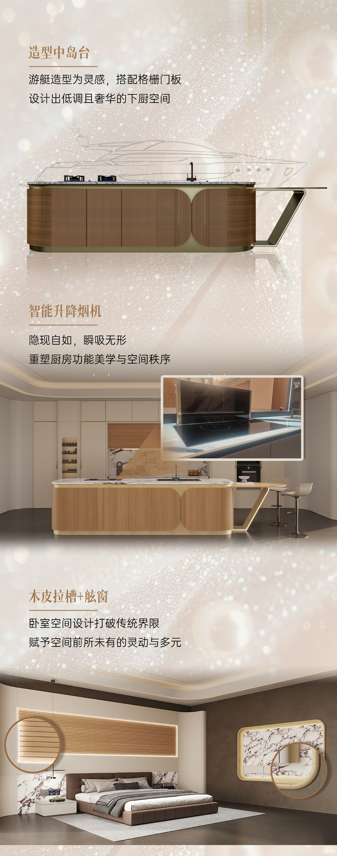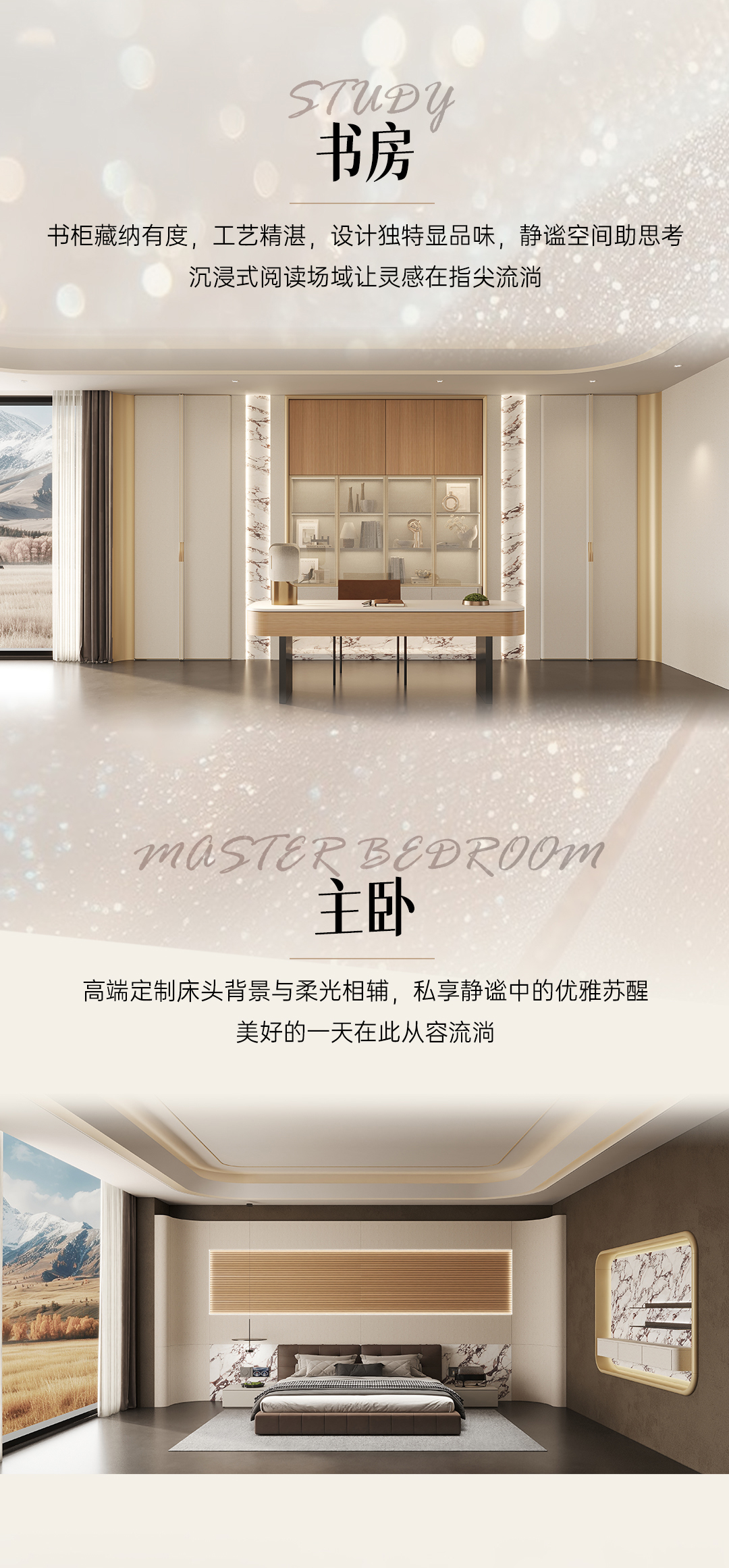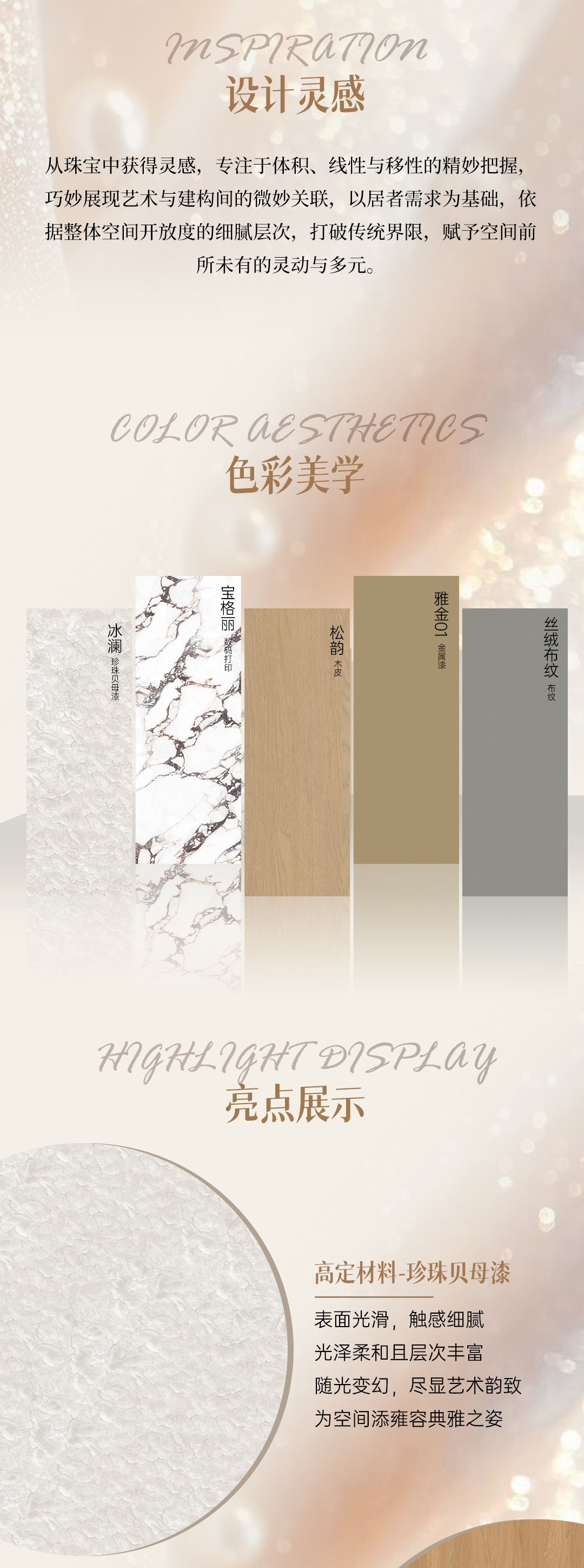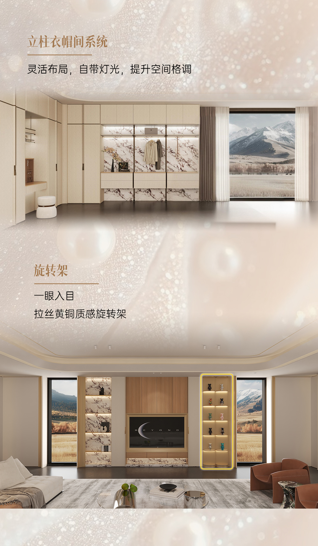2025年新品系列,格雅系列 |雅致輕奢風格從珠寶中獲得靈感,專注于體積、線性與移性的精妙把握,巧妙展現藝術與建構間的微妙關聯(lián),以居者需求為基礎,依據整體空間開放度的細膩層次,打破傳統(tǒng)界限,賦予空間前所未有的靈動與多元。人群定位:30至45歲藝術家家庭,對生活品質持有極致追求