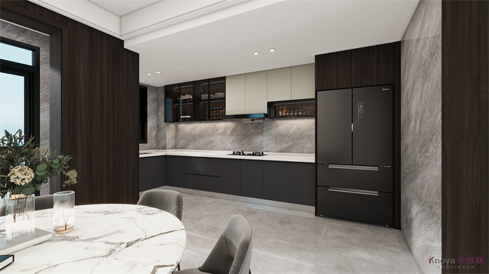 設計方案是一個意式簡約風的大平層,門板材料主要是以水性漆為主,客廳空間因為改造后跨度比較大,光線比較好,所以我們采用部分深色的墻面來搭配淺灰色的地板,讓空間大氣不失沉穩。設計理念:設計源于生活,生活因設計而改變,讓設計物有所值,讓細節締造完美!整家視界 全案生活|第六屆卡諾亞整家設計精英聯賽