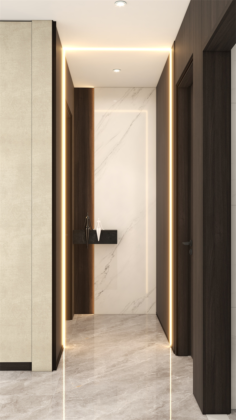 整體空間以現代輕奢風格的設計基調為主,布置上簡約時尚的家具,營造溫馨的家庭氛圍;利落的線條搭配舒適質感的軟裝;開闊的空間為整個設計帶來自由閑適;迎合業主家庭成員的需求,將空間最大利用設計化,暖色調的燈光布置,整體溫暖舒適;各種材料相互協調,帶來時尚的氛圍。設計理念:聆聽業主需求,提供最佳設計,創造溫馨夢想家園。整家視界 全案生活|第六屆卡諾亞整家設計精英聯賽
