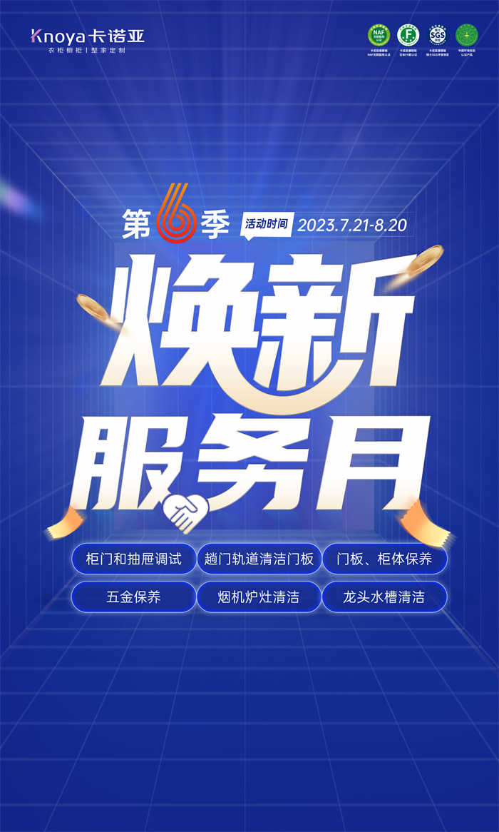 本次煥新服務月,不但有感恩回饋新老客戶專享煥新服務活動的各項鉅惠,同時針對老客戶,除了常規的上門維護保養服務之外,如果老客戶家里需要煥新,包括五金升級更換、配套家品更新、衣柜護墻更換等,還有推薦新客戶,均可獨享3大煥新專屬優惠活動和各種福利。