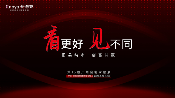 2024年3月27日-30日,第13屆中國廣州定制家居展覽會,將在廣州保利世貿博覽館舉行。存量房時代,下游家居業處于變革發展周期,市場分級、用戶分層,越來越多企業通過創新尋求業績新增長點,定制家居業迎來新一輪高質量發展變革浪潮。專注定制家居23年的卡諾亞,將攜1121戰略、2大新品強勢亮相本屆展會,助力加盟商打造差異化競爭優勢。屆時誠邀各界精英蒞臨3B04展館,看更好的卡諾亞,見不同的大未來,廠商攜手“招縣納市·創富共贏”。