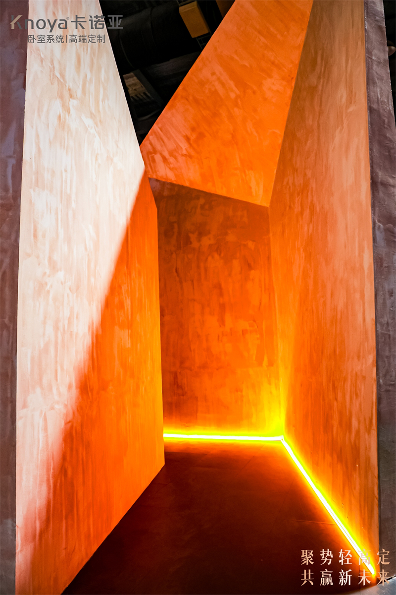 曹崇慧:卡諾亞今年展館首次設(shè)置在輕高定區(qū)域,以“破·壁——回歸自然,重塑空間”為主題參展。卡諾亞輕高定展館設(shè)計,以洞穴為原型,通過天然巖石門廊、枯枝裝置藝術(shù)與層疊光影,營造神秘而治愈的探索場域。
