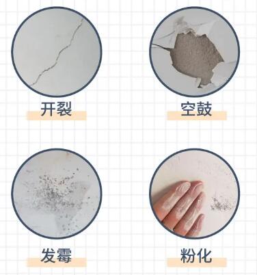 老房墻面即使看起來沒什么問題,也要驗明是否有開裂、空鼓、發霉、粉化等問題,如有,則必須全部鏟除,重新批灰、刷墻。