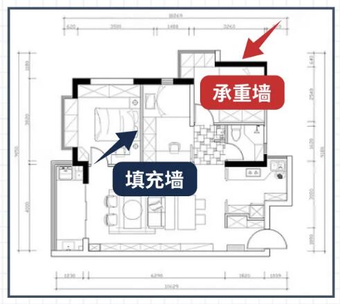 改造前建議調閱原始的平面布置圖,填充墻可拆除,承重墻不可拆除。