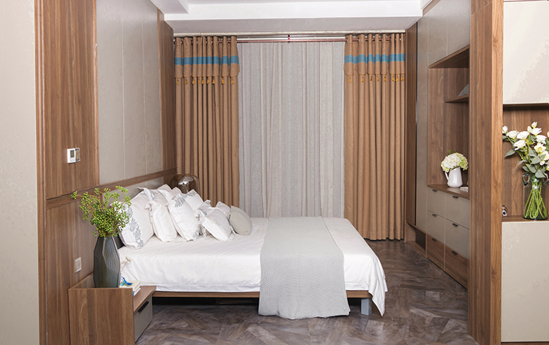 卡諾亞丨都市閑情·臥房開啟繁忙的都市生活,從睡一個好覺開始!大面積的護墻系統(tǒng)使用,冬暖夏涼、吸音減噪、防潮吸濕。運用時尚豎紋線條,護墻系統(tǒng)與墻等寬色塊設(shè)計,讓人備受呵護,更具安全感。深色木紋與淺灰搭配使用,寧靜的色調(diào)中賦予臥房別樣的靜謐。
