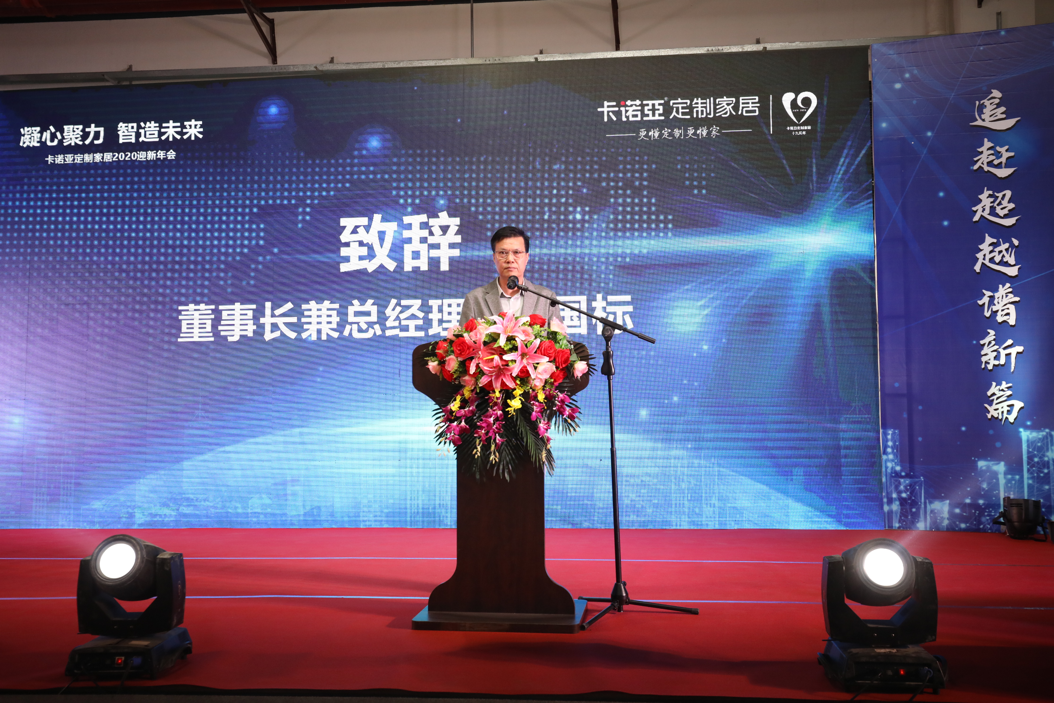 2020年1月10日,“凝心聚力,智造未來”卡諾亞定制家居2020迎新年會,在卡諾亞清遠工業4.0智造基地隆重舉行,共有1500余人參加了此次活動。卡諾亞董事長兼總經理程國標先生應邀作為領導嘉賓出席會議并作重要致辭,出席會議的還有執行董事吳紹華女士、副總經理兼生產中心總經理葉喜都先生、副總經理兼營銷中心總經理賴永精先生、營銷中心副總經理李偉明先生等高層,以及其他董監高。